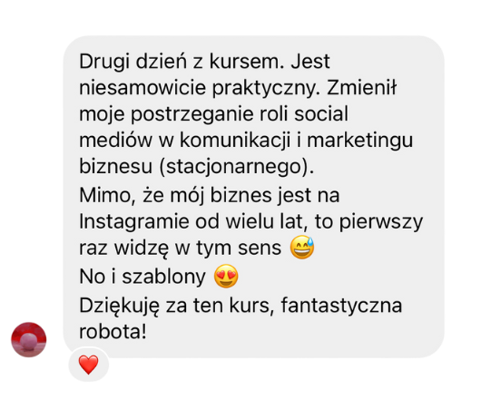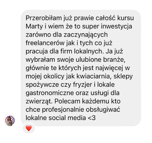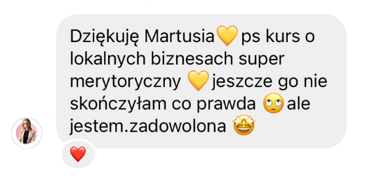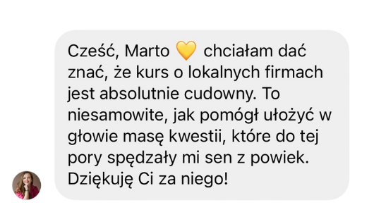 Tak, tak, tak! Jeżeli świadczysz usługi lokalnie, na określonym terenie, to jak najbardziej kurs dla Ciebie. Dzięki niemu dotrzesz do realnie zainteresowanych pracą z Tobą klientów, którzy nie obserwują Cię tylko “dla inspiracji”, ale są gotowi zapłacić Ci pieniądze, bo mieszkają w pobliżu.