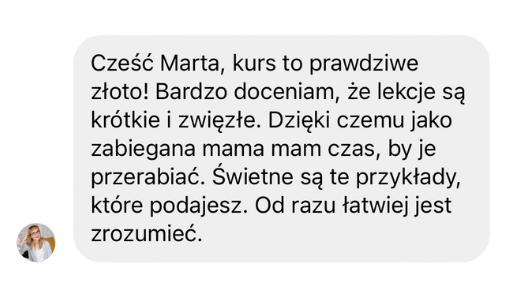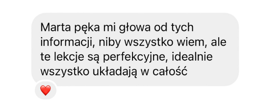 Pewnie, że tak! Napisz do mnie wiadomość na IG: @marta.paplaczyk lub maila: hello@martapaplaczyk.pl bardzo chętnie odpowiem na Twoje pytania i podpowiem, czy to na pewno kurs dla Ciebie.